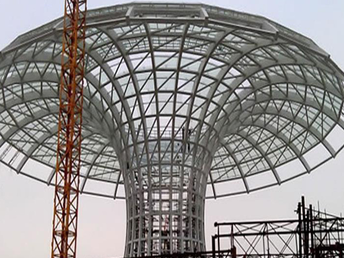 二、球形网架结构因其结构新颖,受力合理,自重轻、用钢量低等优点。如大型体育场馆球形阿勒泰螺栓球网架、公共场馆球形网架、电厂阿勒泰螺栓球网架、水泥工业球形网架、仓储物流球形网架、阿勒泰干煤棚工业球形网架、阿勒泰收费站阿勒泰加油站球形网架、展览中心、影剧院、商场、航站楼、候车厅、工厂阿勒泰车间、仓库、电视塔等球形螺栓球节点网架。国内球形网架结构主要分为:阿勒泰焊接球节点网架及螺栓球节点网架两种。螺栓球节点网架其构件工厂内加工量较大,现场安装便捷,适用于现场工期紧,阿勒泰施工条件、用电量受制约,网架形状复杂、阿勒泰杆件定位困难的异形结构。螺栓球节点球形网架系统基本由阿勒泰杆件、螺栓球、支撑支座等组成。按照节点形式可分为交叉阿勒泰桁架体系、四角锥体系、三角锥体系等。支撑方式多为固定支座支撑。对于大面积、大跨度及有特殊受力或伸缩要求的网架结构可采用橡胶支座、滑移支座、球铰支座等支撑形式,以满足结构自身的受力稳定、均衡,便于内力释放等设计要求。